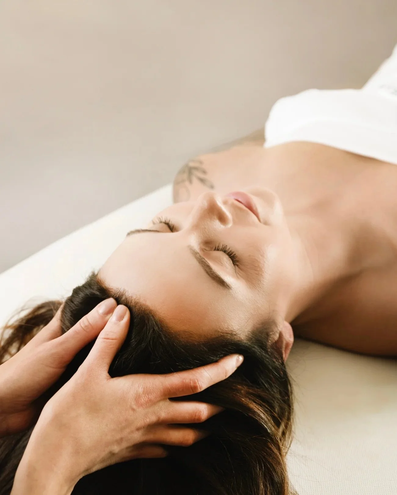 Your treatment also includes facial cupping and gua sha, gentle tools that support lymphatic movement, reduce puffiness, soften facial tension, and encourage healthy circulation through the face, neck, and jaw. These quiet, intentional techniques can help ease jaw tightness, eye strain, and headaches while inviting the body into deep rest.